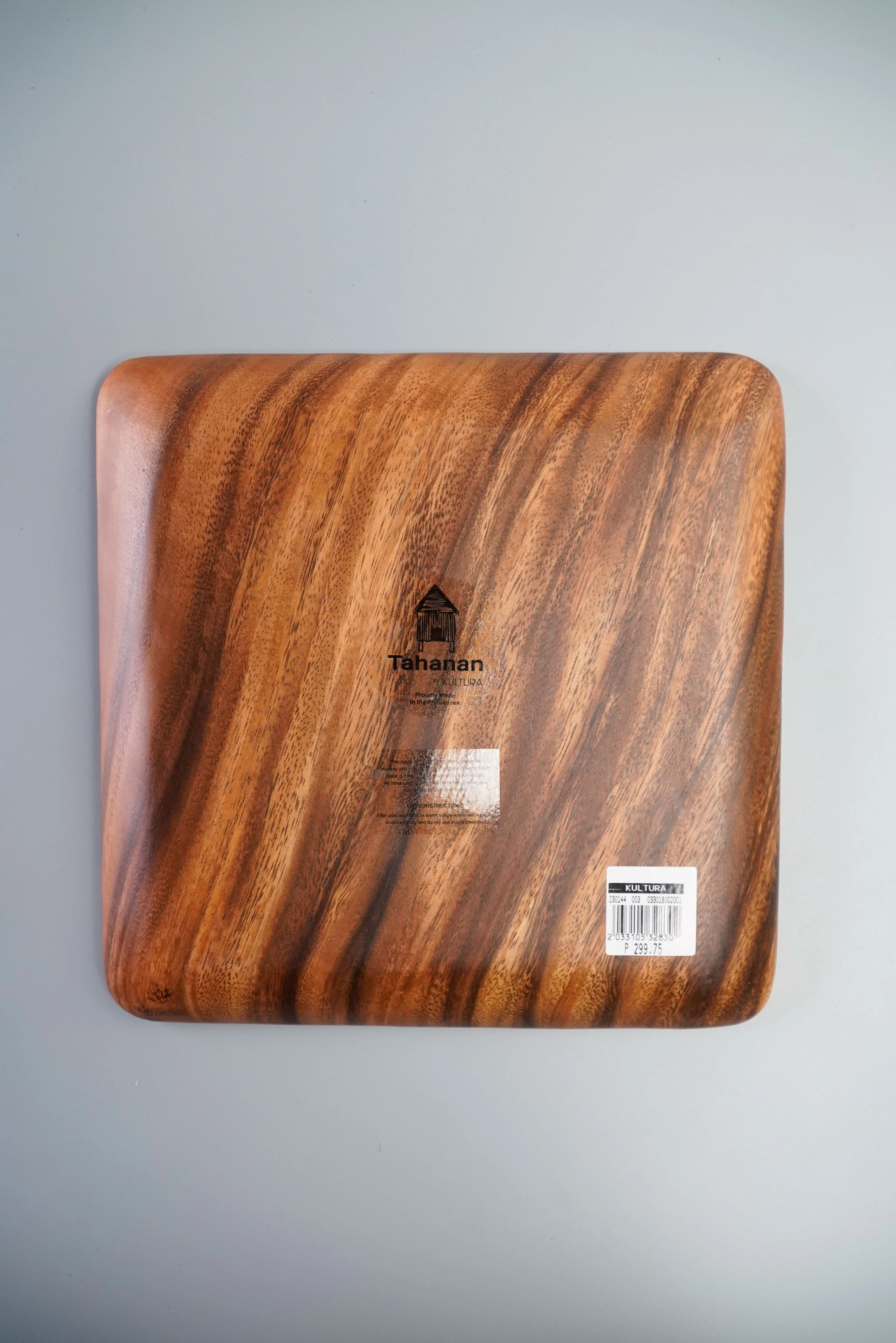 - Handcrafted round wood plates made from Acacia, a durable hardwood found in the Philippines, often used for its fine grain, lustrous finish, and varied color tones.